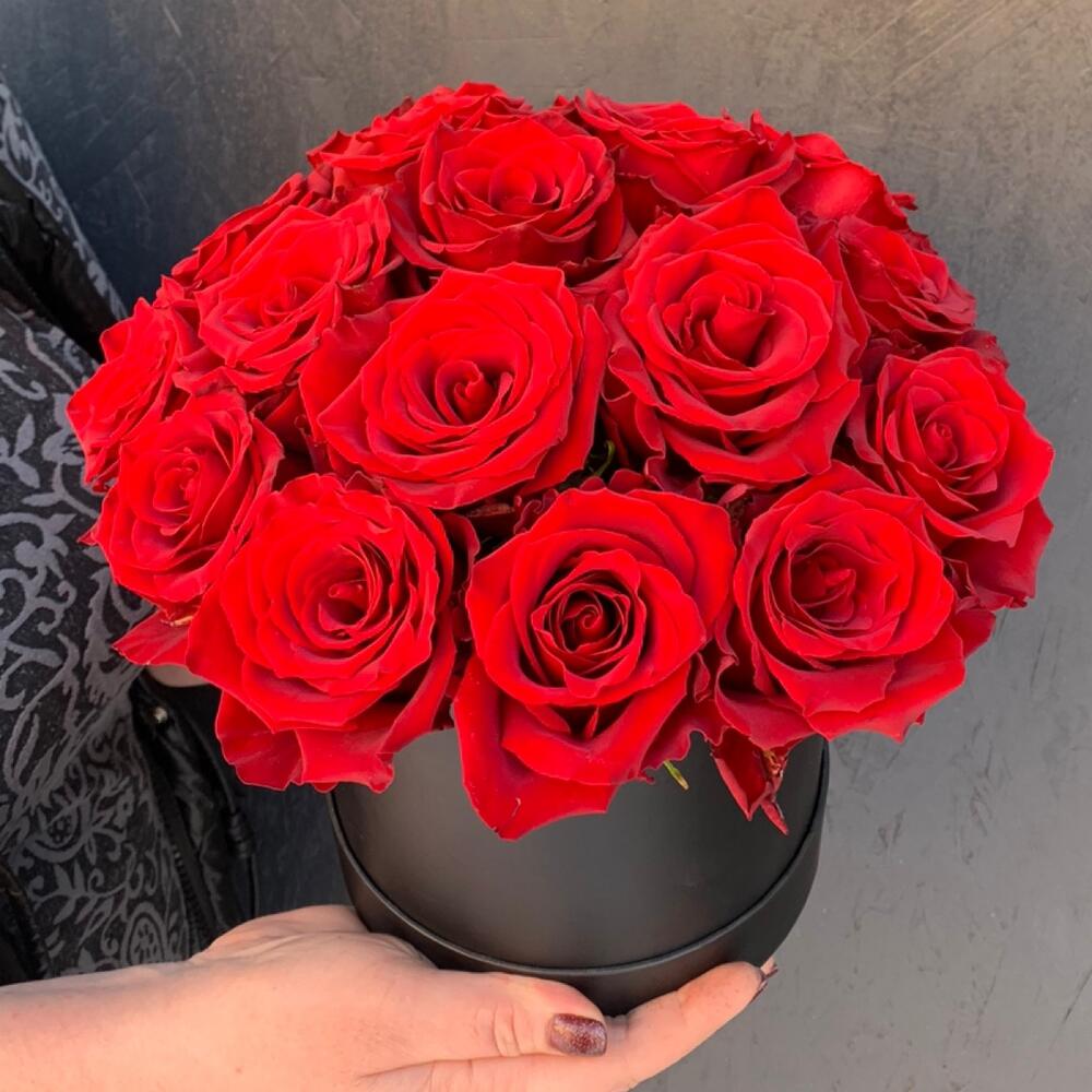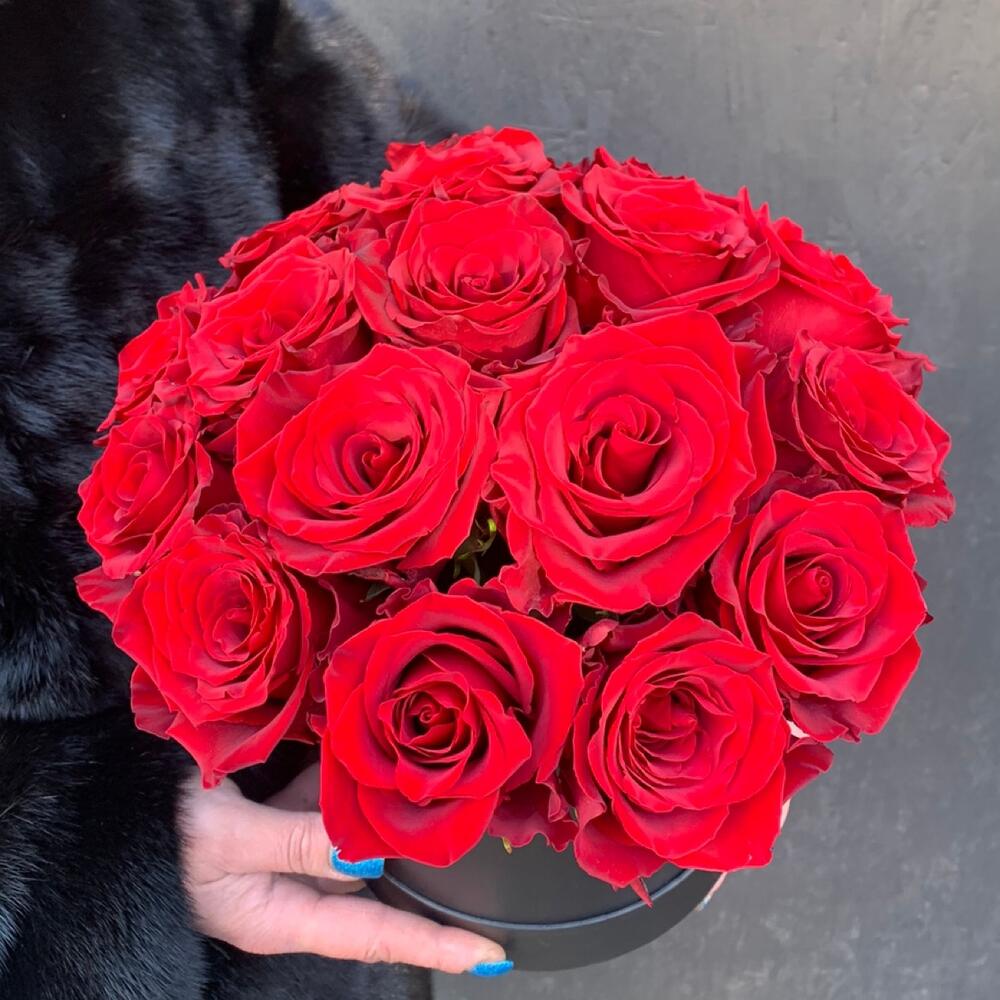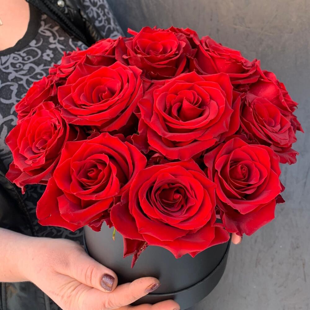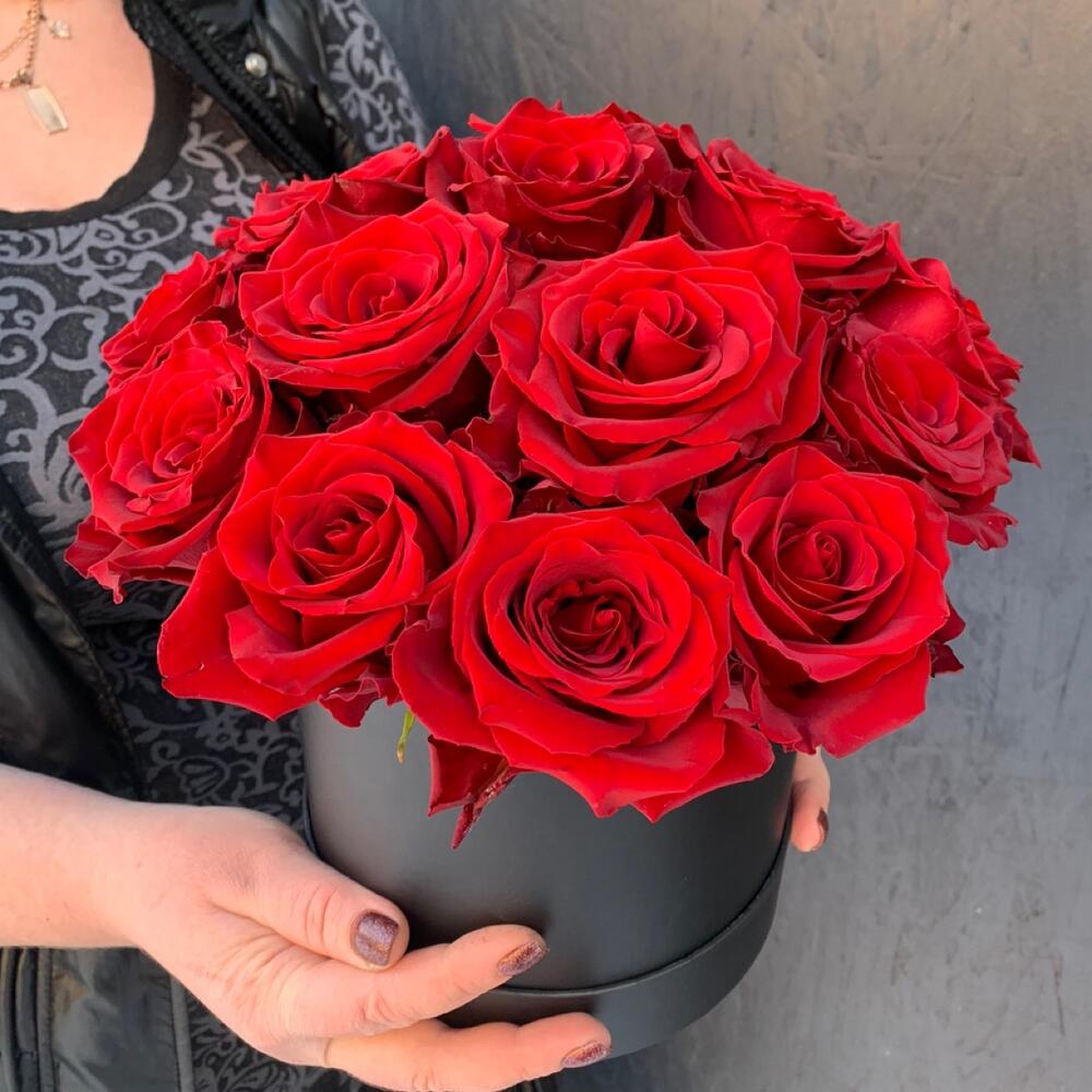 Красные розы в шляпной коробке