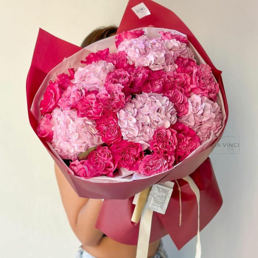 Роза голландская 60 см – 25 шт. Гортензия – 3 шт.