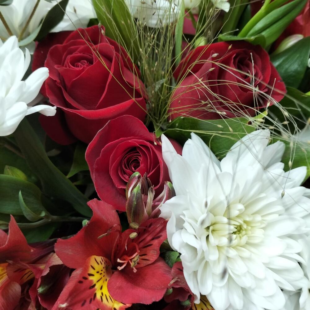 Категорий: Альстромерии, Кустовые розы, Лилии, Розы, Хризантемы
