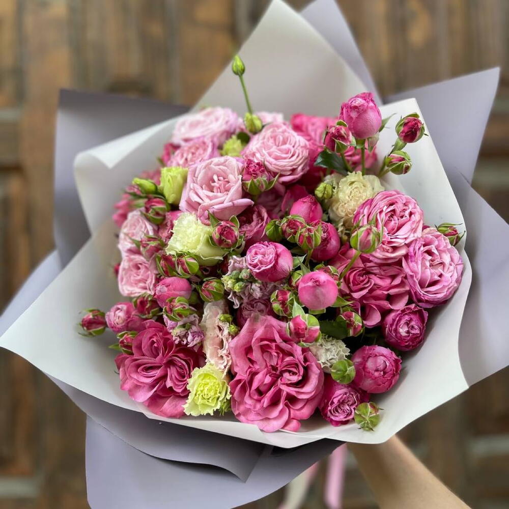 Альстромерии, Кустовые розы, Лизиантусы, Пионовидные розы, Розы, Ромашки