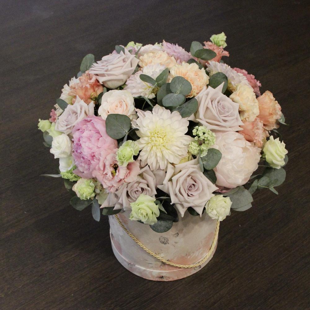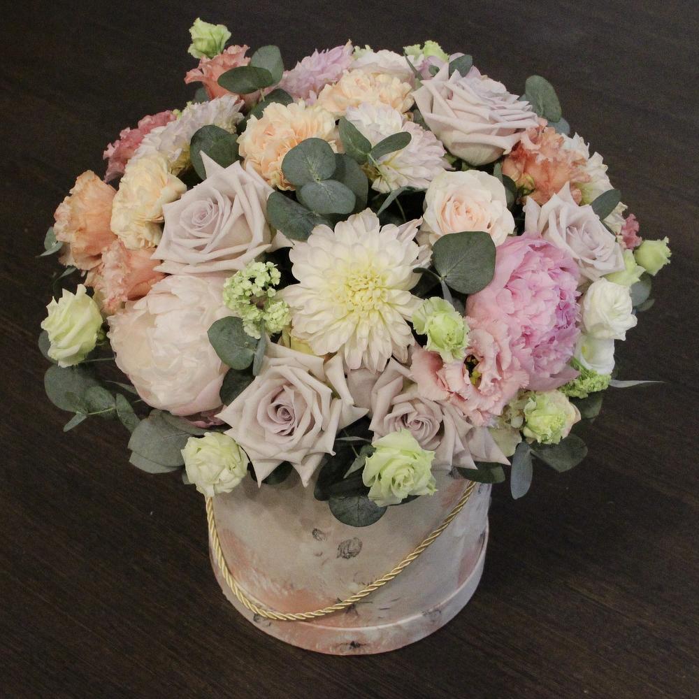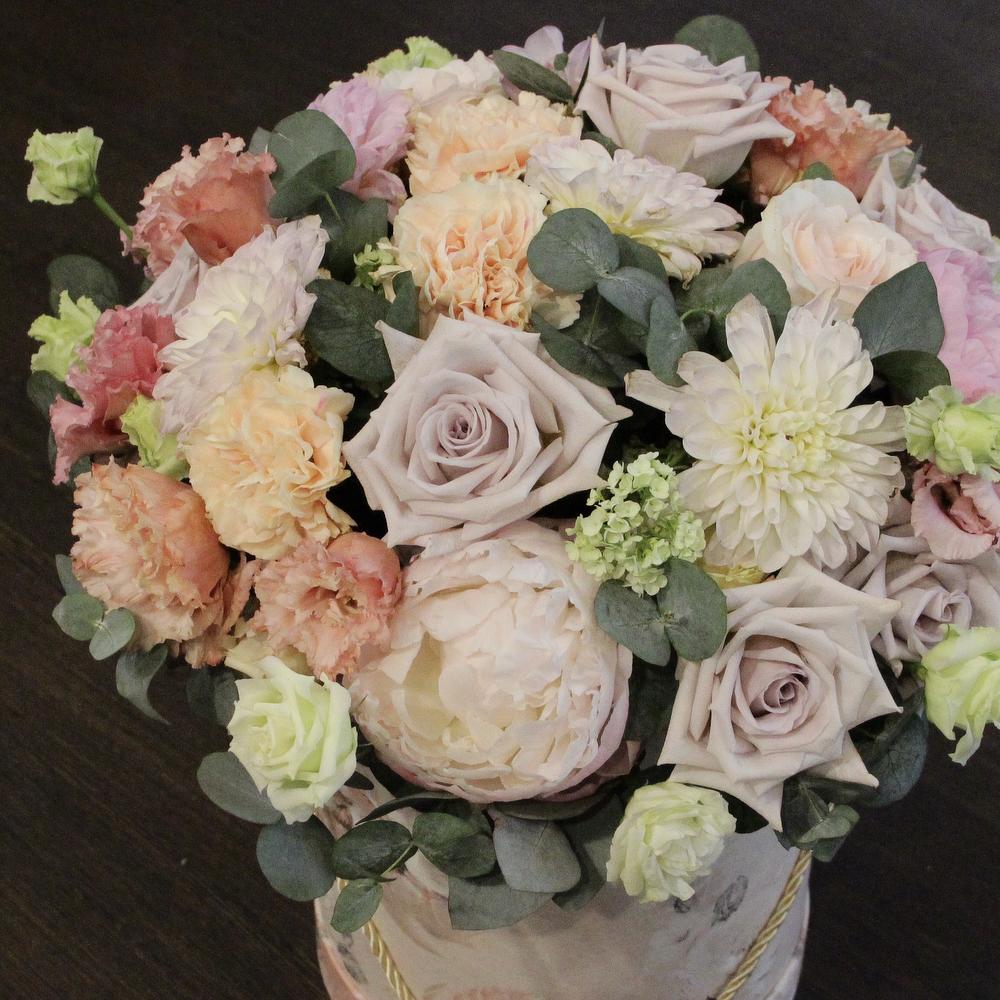 Альстромерии, Гвоздики, Кустовые розы, Лизиантусы, Розы, Хризантемы