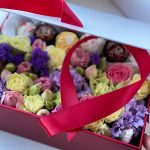 “Атлас☁️” – цветочная композиция с зефиром в деревянном ящике