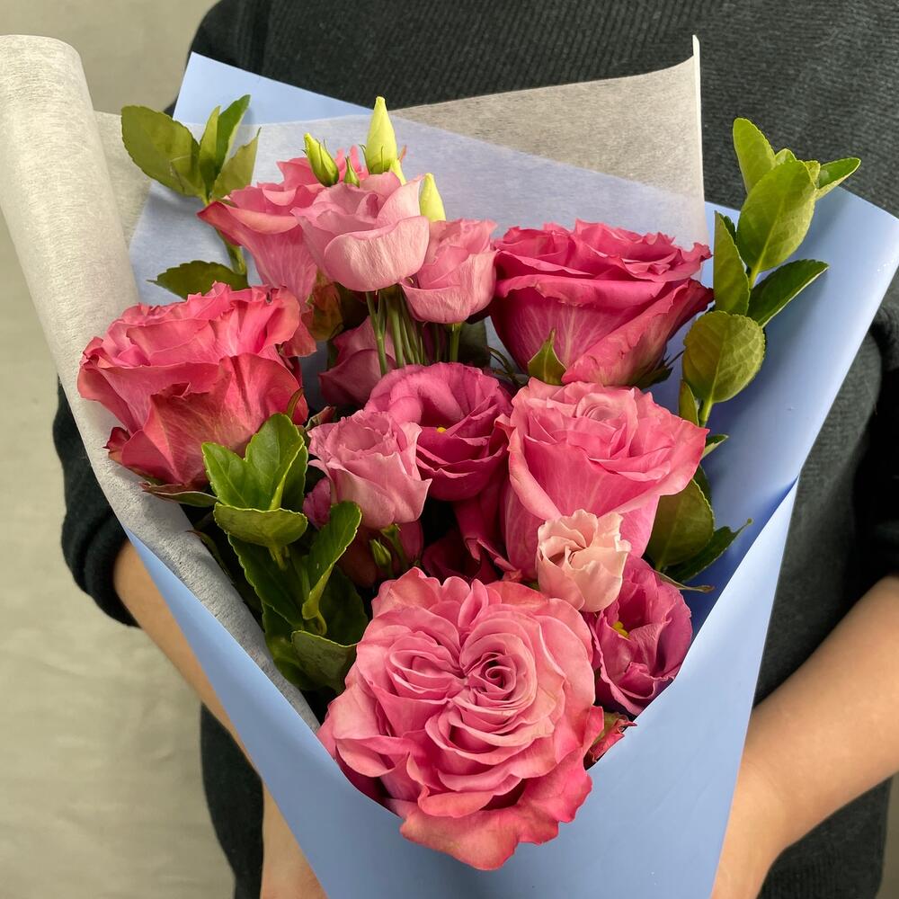 Гвоздики, Кустовые розы, Лизиантусы, Пионовидные розы, Розы