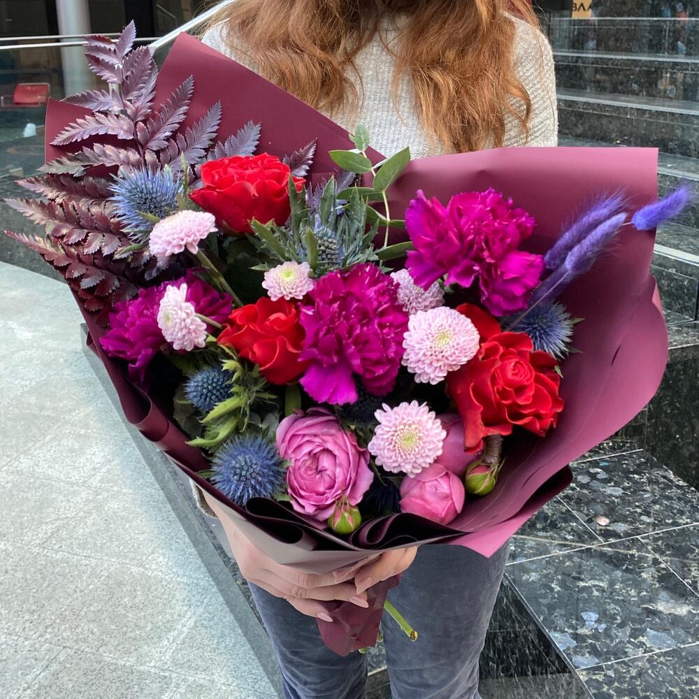 Гвоздики, Кустовые розы, Лизиантусы, Пионовидные розы, Розы