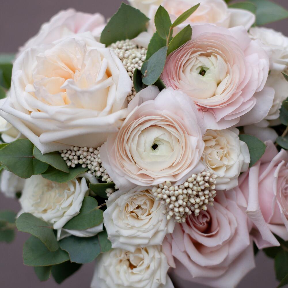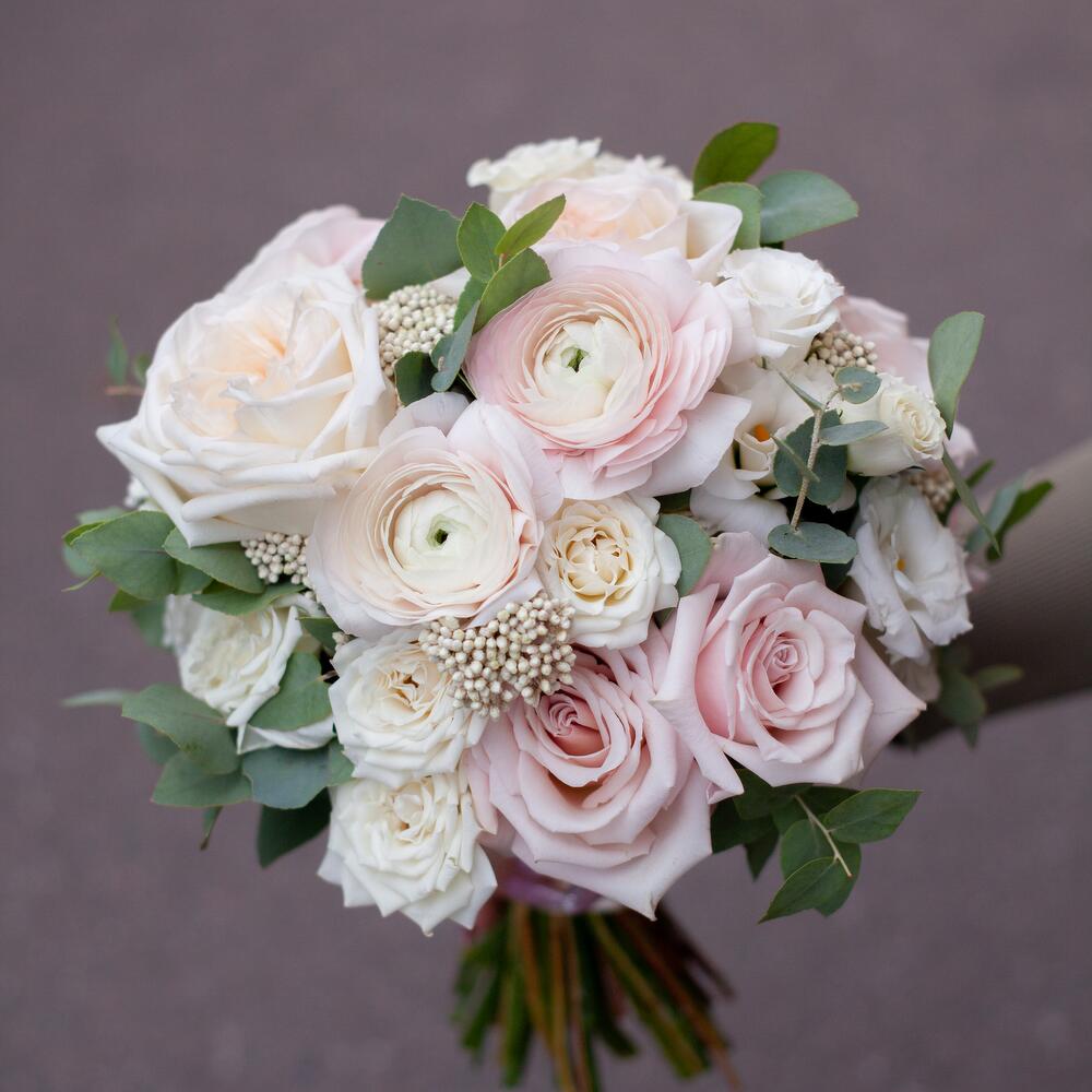 Свадебный букет невесты зефирный с ранункулюсами