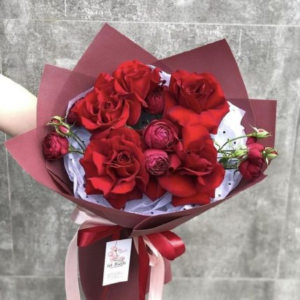 Флористы из студии “Varda Flowers” подобрали свежие и красивые цветы для создания букета, который наполнен положительными эмоциями и любовью. Они тщательно расположили каждый цветок в букете, учитывая его форму и цветовую гамму, чтобы достичь наилучшего гармоничного и красивого результата.