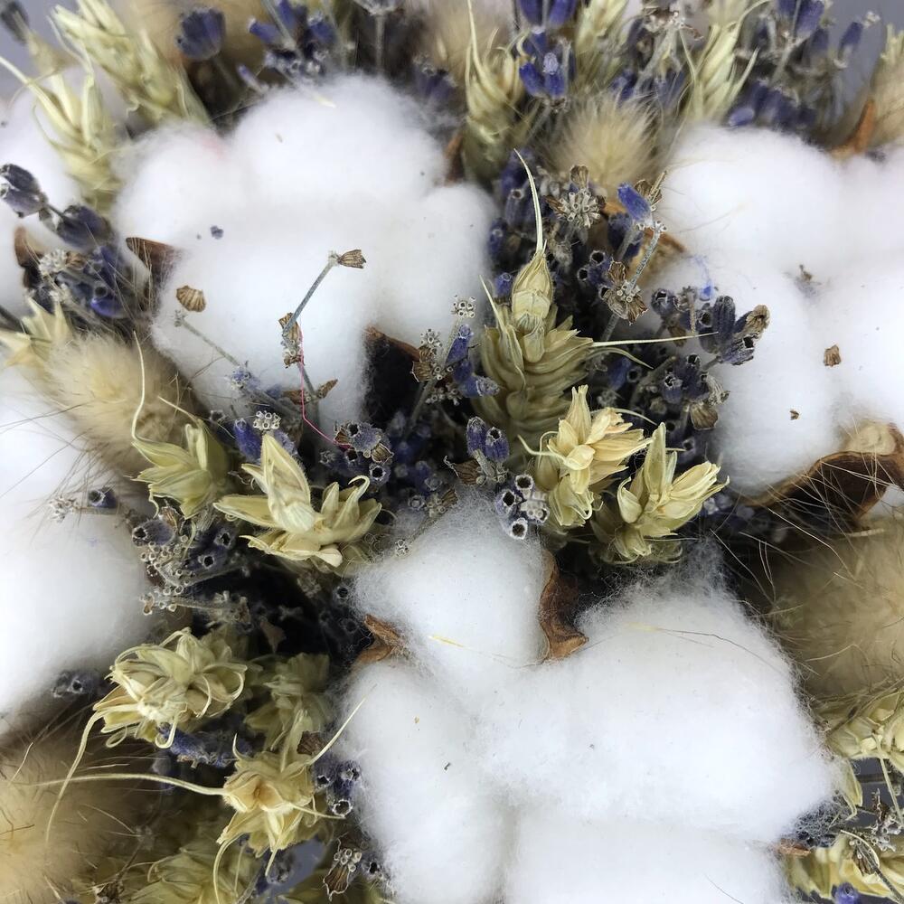 Пшеница (сухоцвет) – 100 шт.Лаванда (сухоцвет) – 41 шт.Хлопок натуральный – 6 шт.