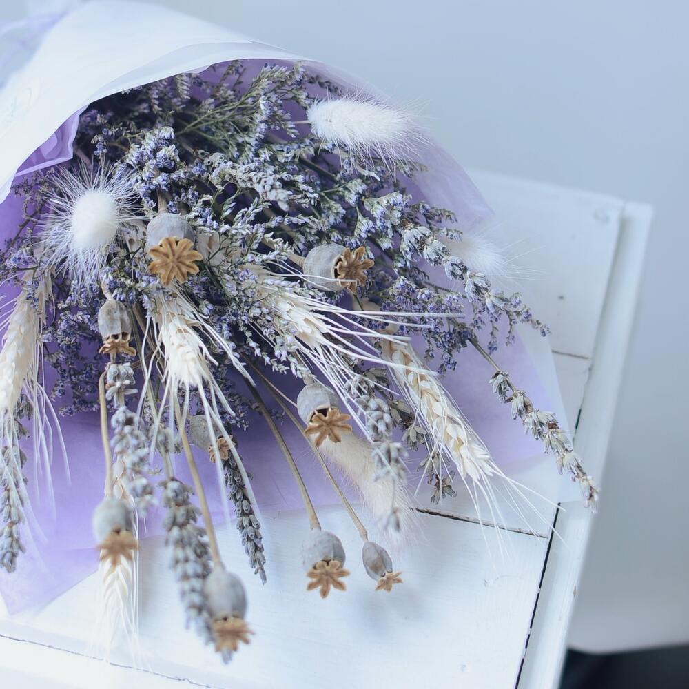 мак коробочка – 9 шт.лаванда сухоцвет пучок – 1 шт.лимониум пучок – 1 шт.пшеница выбеленная – 5 шт.Лагурус – 4 шт.Упаковка дизайнерская – 19 шт.