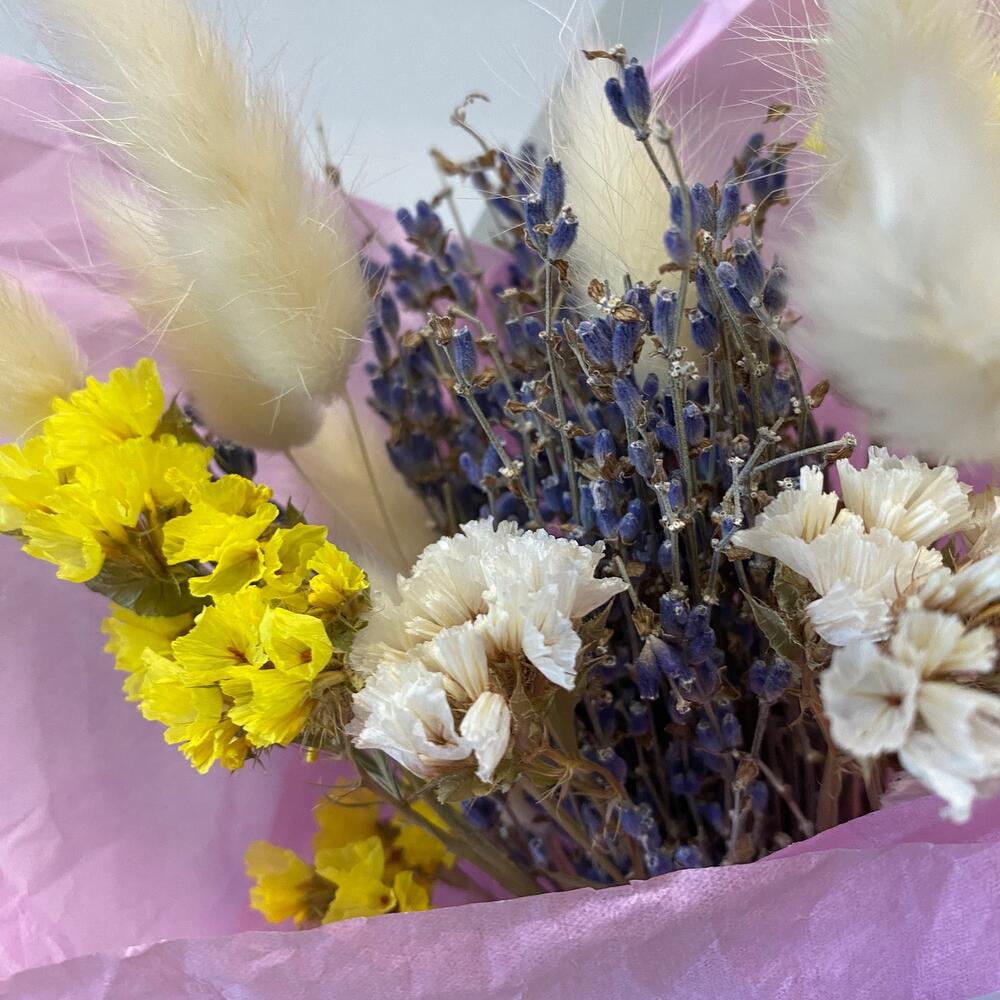 Лагурус (сухоцвет) – 11 шт.Лаванда (сухоцвет) – 1 шт.статица сухоцвет – 3 шт.