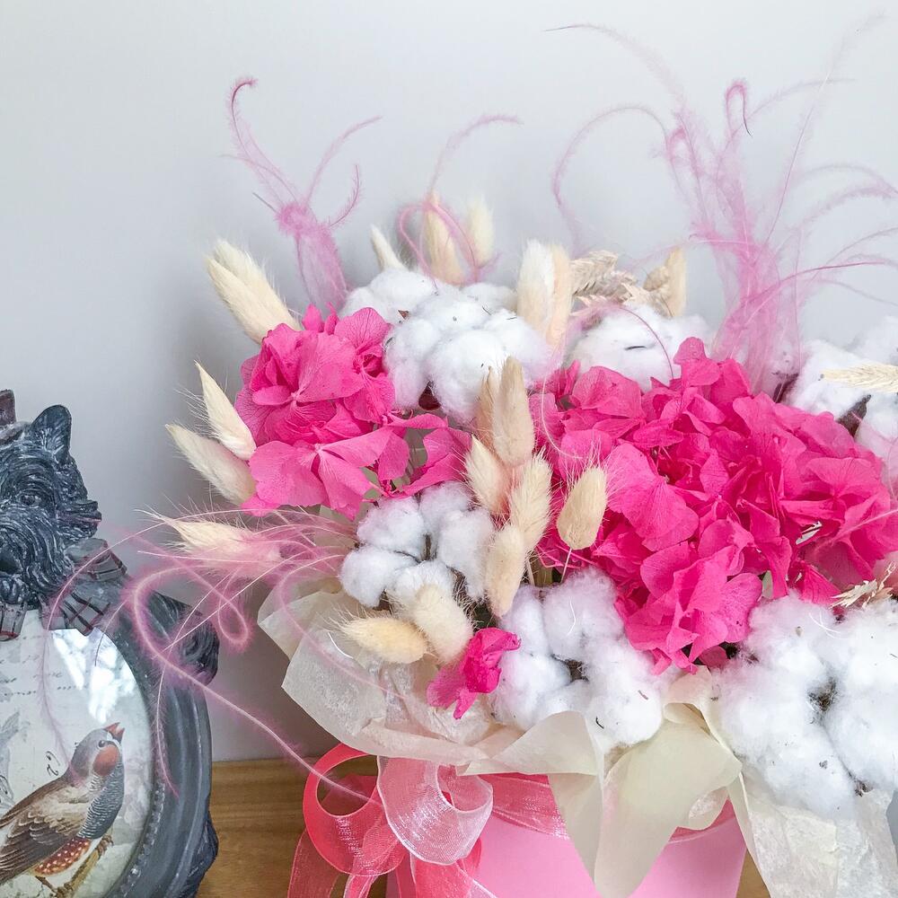 Гортензия – 1 шт.Хлопок натуральный – 7 шт.Лагурус (сухоцвет) – 25 шт.