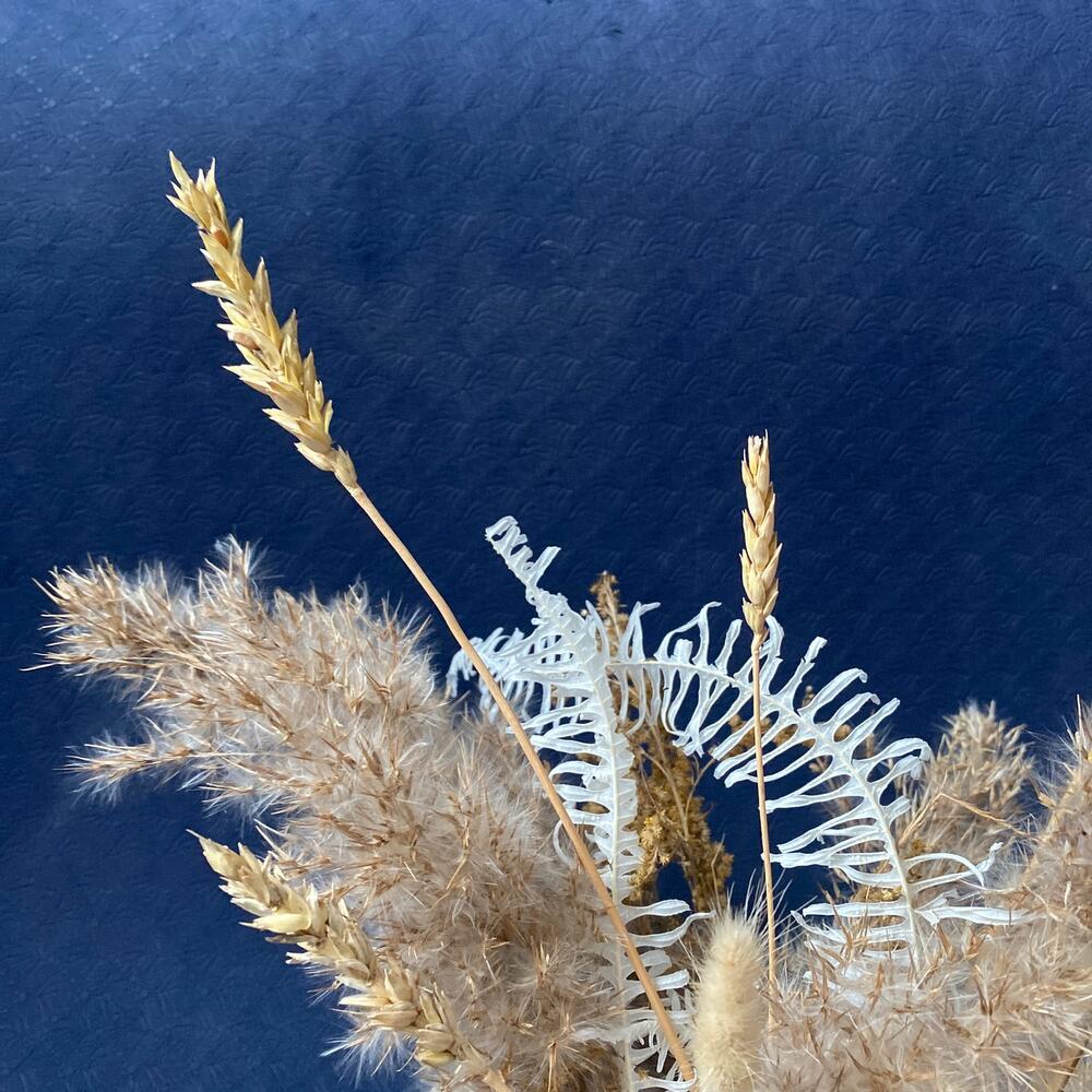 Кашпо керамическое – 1 шт.Оазис флористический – 1 шт.Лагурус – 5 шт.кортадерия – 7 шт.лен сухоцвет – 1 шт.папоротник стабилизированный – 3 шт.Эвкалипт стабилизированный – 3 шт.Колосья – 3 шт.солидаго сухоцвет – 9 шт.