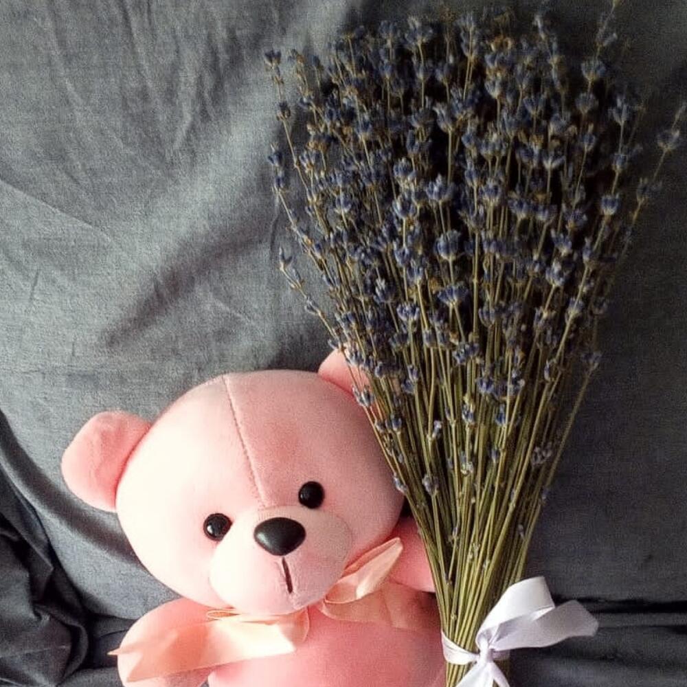 Мишка плюшевый – 1 шт.Лаванда (сухоцвет) – 85 шт.Лента атласная – 1 шт.