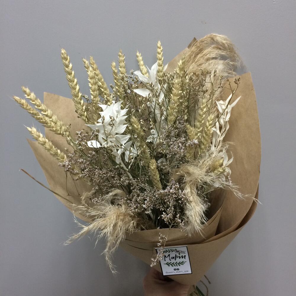 Букет из сухоцветов в розовых тонах с хлопком