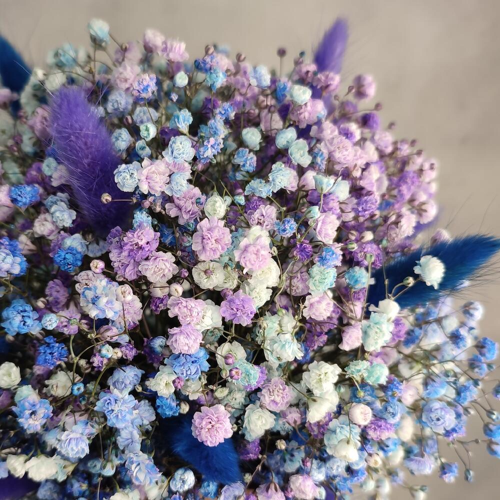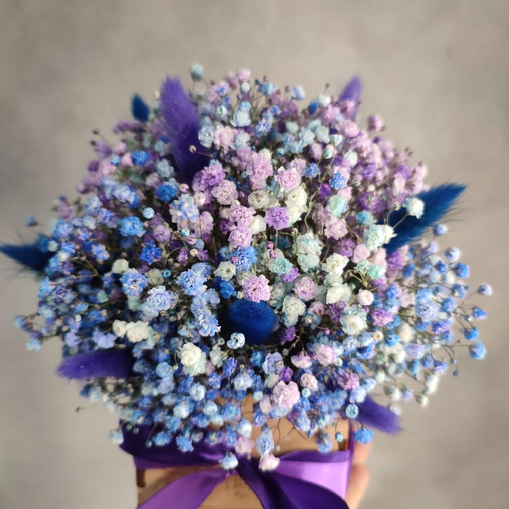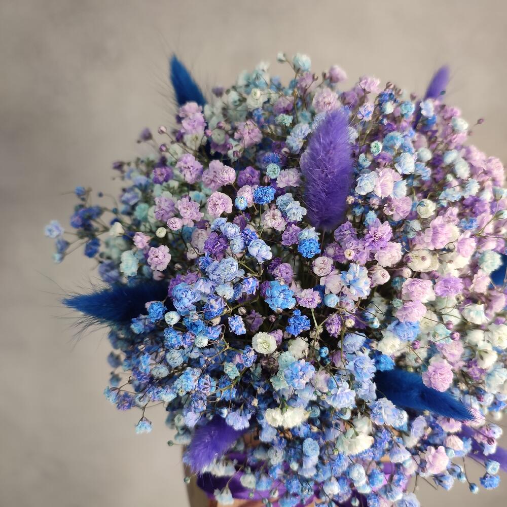 «Лавандовое созвездие» Букет из розы, гвоздики, статица и хлопка