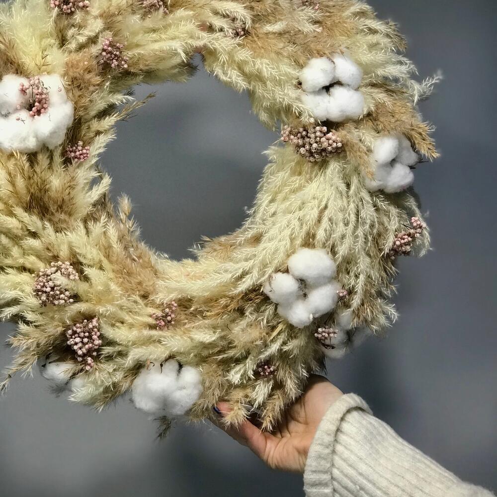 картаделия – 15 шт.Хлопок (сухоцвет) – 2 шт.Озотамнус розовый – 5 шт.