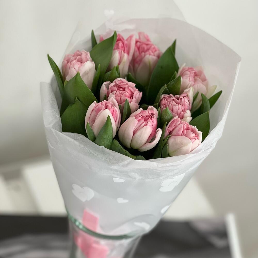 9 пионовидных Тюльпанов в оформлении