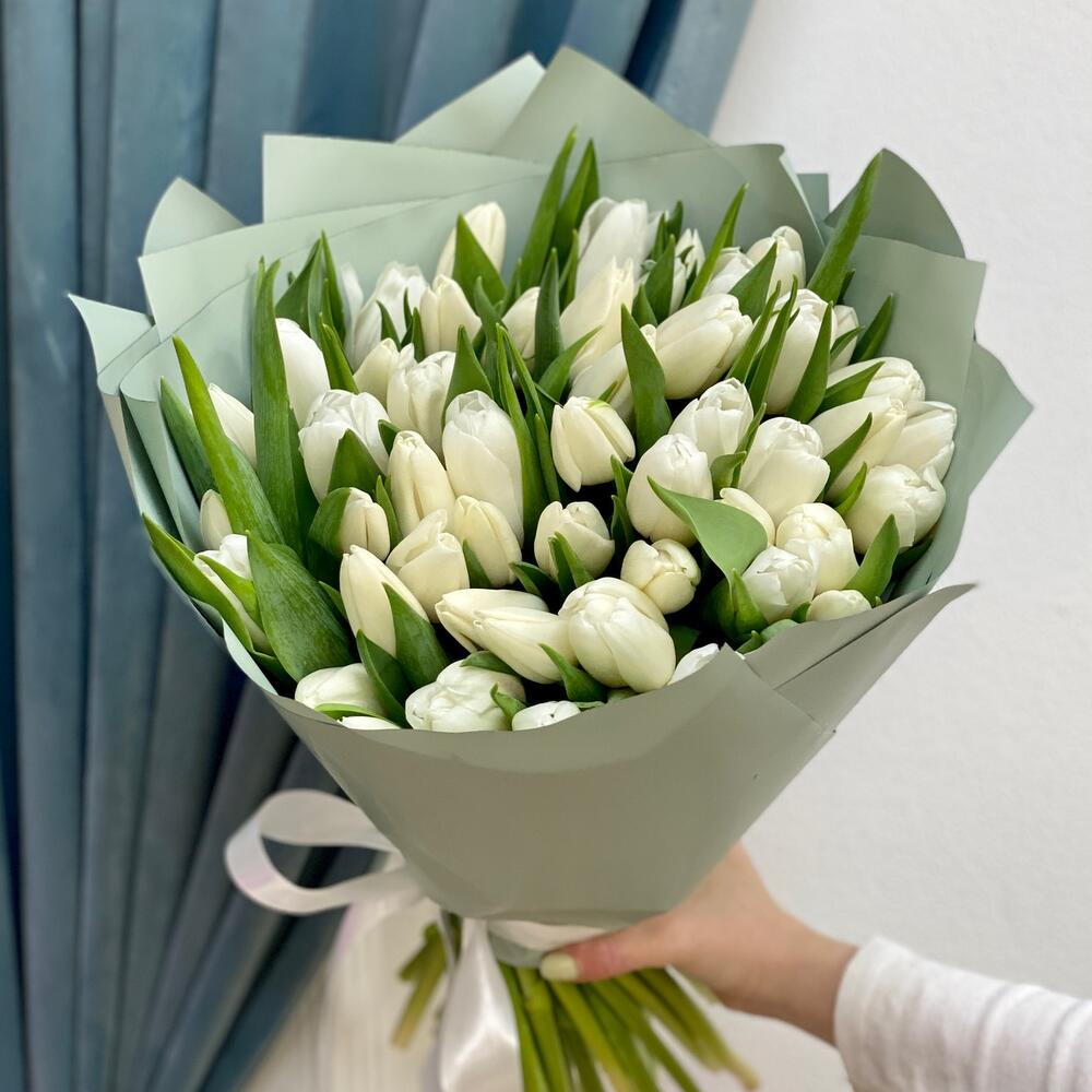 Букет белых тюльпанов 51 шт - «Рай на двоих»