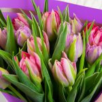 Букет из 15 тюльпанов пионовидных микс в дизайнерской упаковке