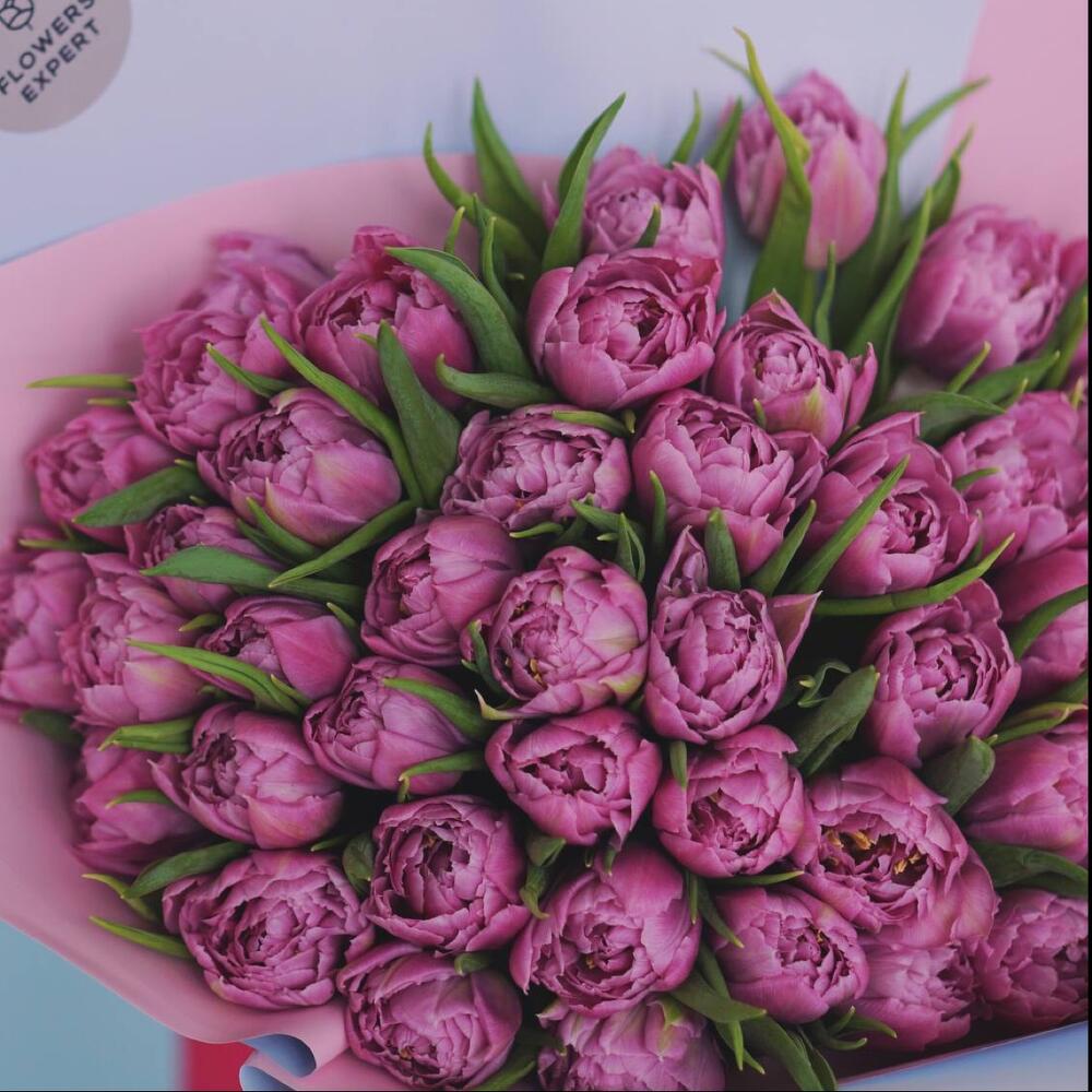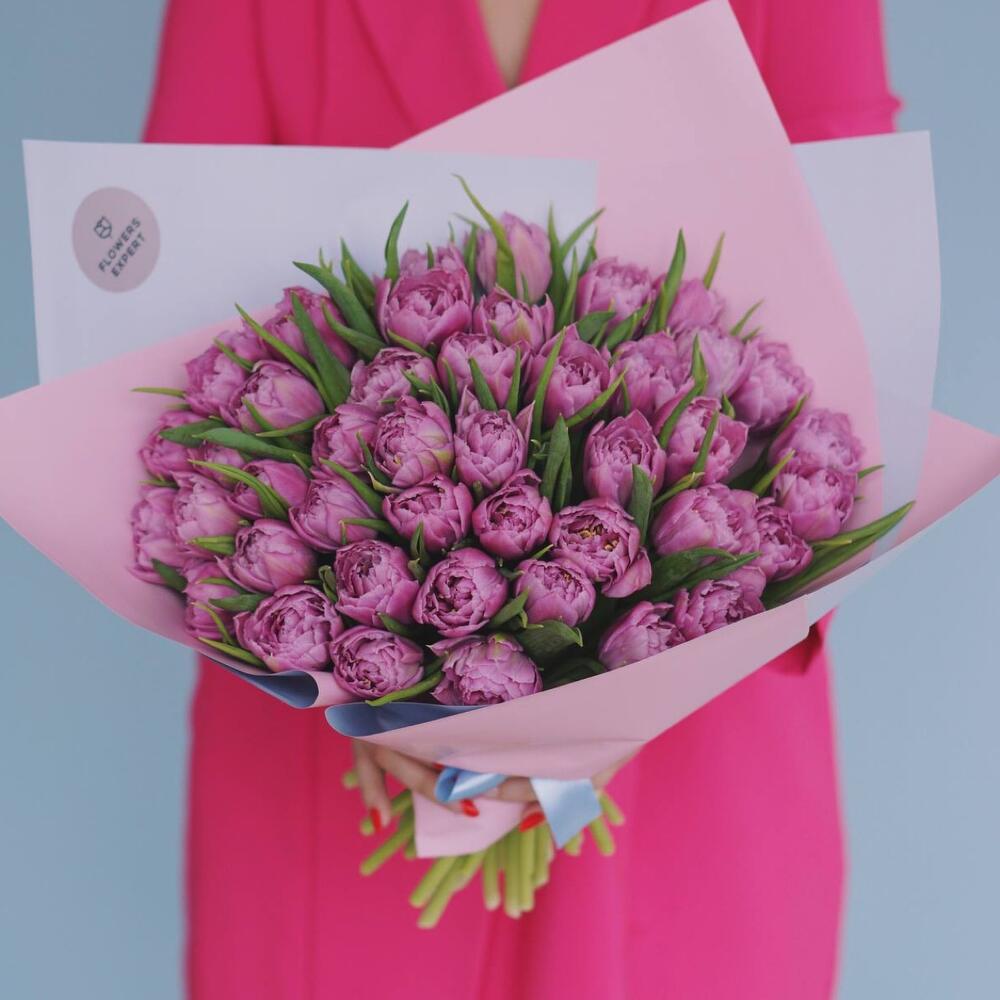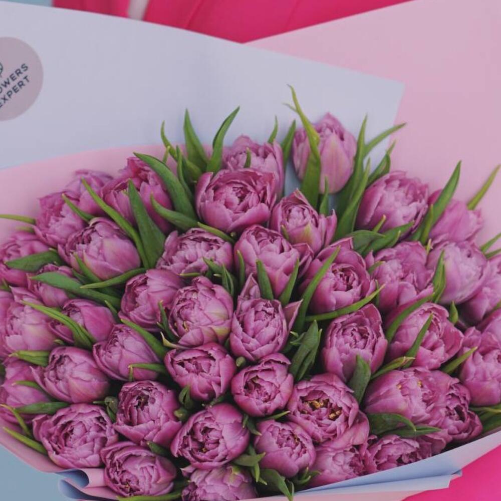 25 пионовидных сиреневых тюльпанов дабл прайс. Букет 200 Kimbirly Flowers
