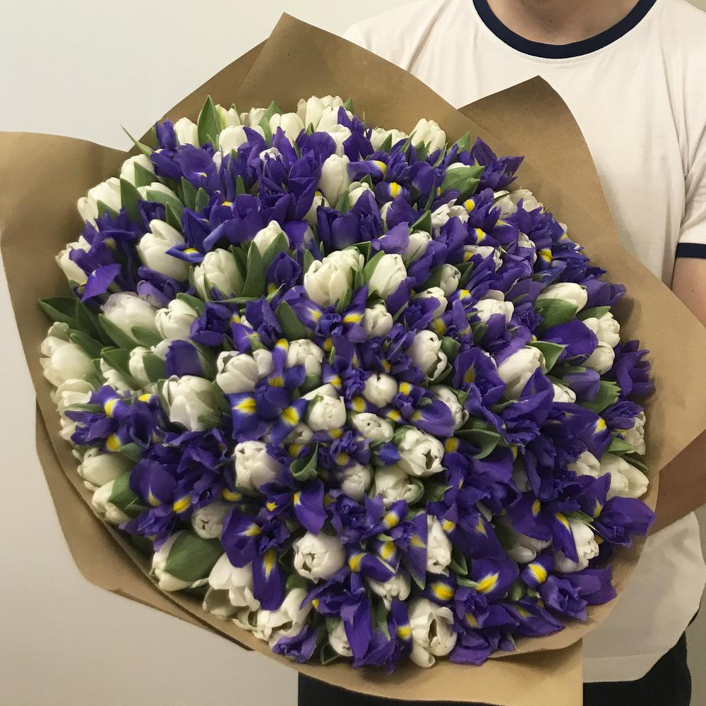 Букет из ирисов и тюльпанов "White Blue"