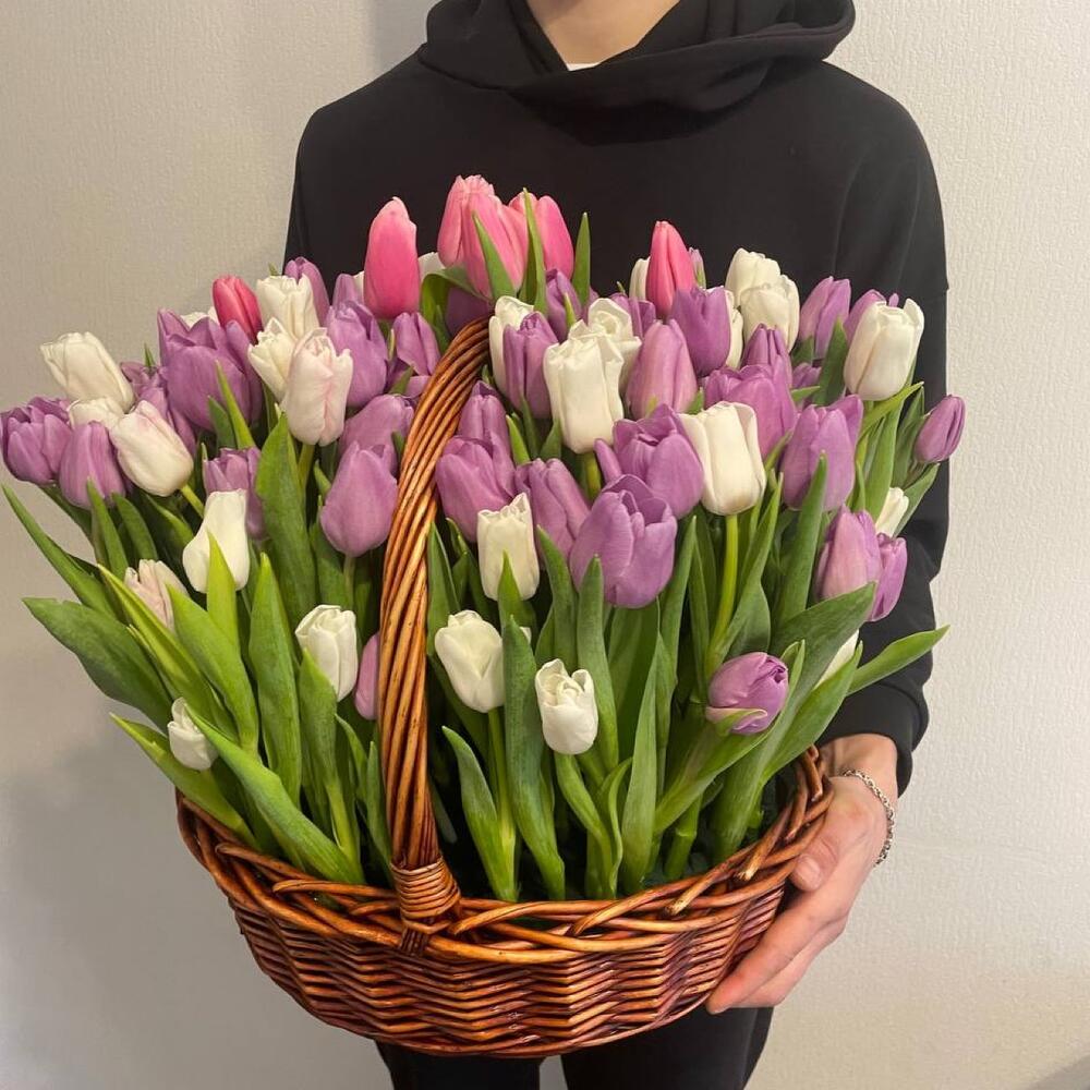 Корзина с тюльпанами