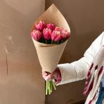 Крафт упаковка – 1 шт.тюльпан пионовидные красные – 7 шт.