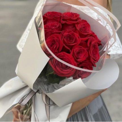 11 красных роз 60 см