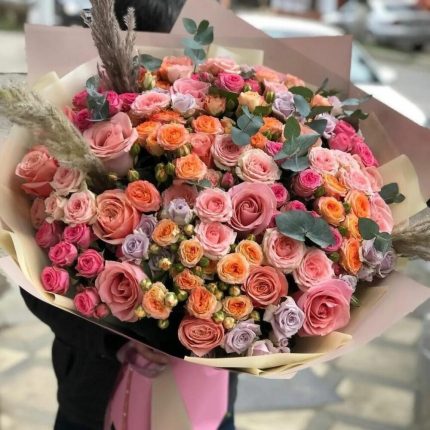 Большой букет из 151 красной и розовой розы «Преданное сердце» в дизайнерской коробке
