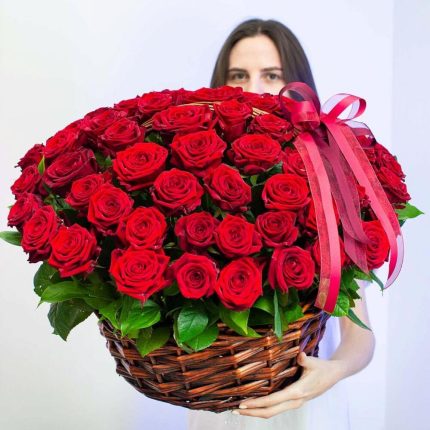 Корзина из 101 алых роз