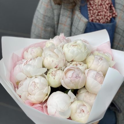 Большой авторский букет из французских и пионовидных роз с маттиолой с эвкалиптом