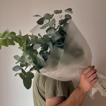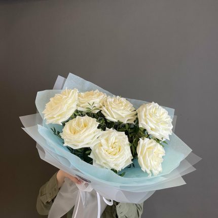 7 пионовидных роз с эвкалиптом